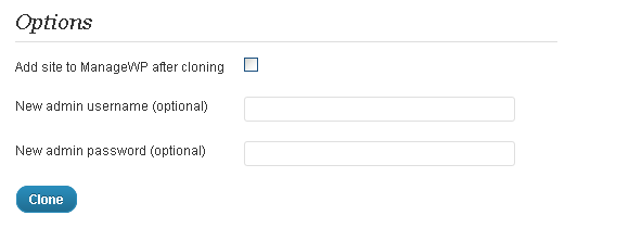 You can also change the admin username and password during the clone process, as well as automatically add the website to ManageWP after cloning.