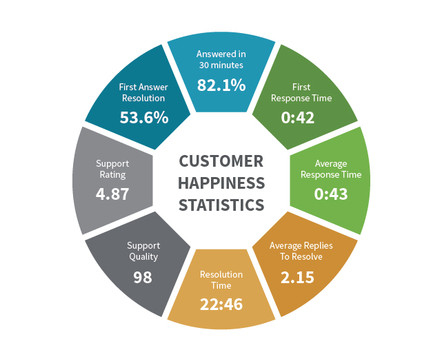 The study found that 32% of customers expect a response within 30 minutes and our results show that 82.1% of our replies came to you in the first 30 minutes. Please note that you have never received an automatic reply from our Customer Happiness Team.