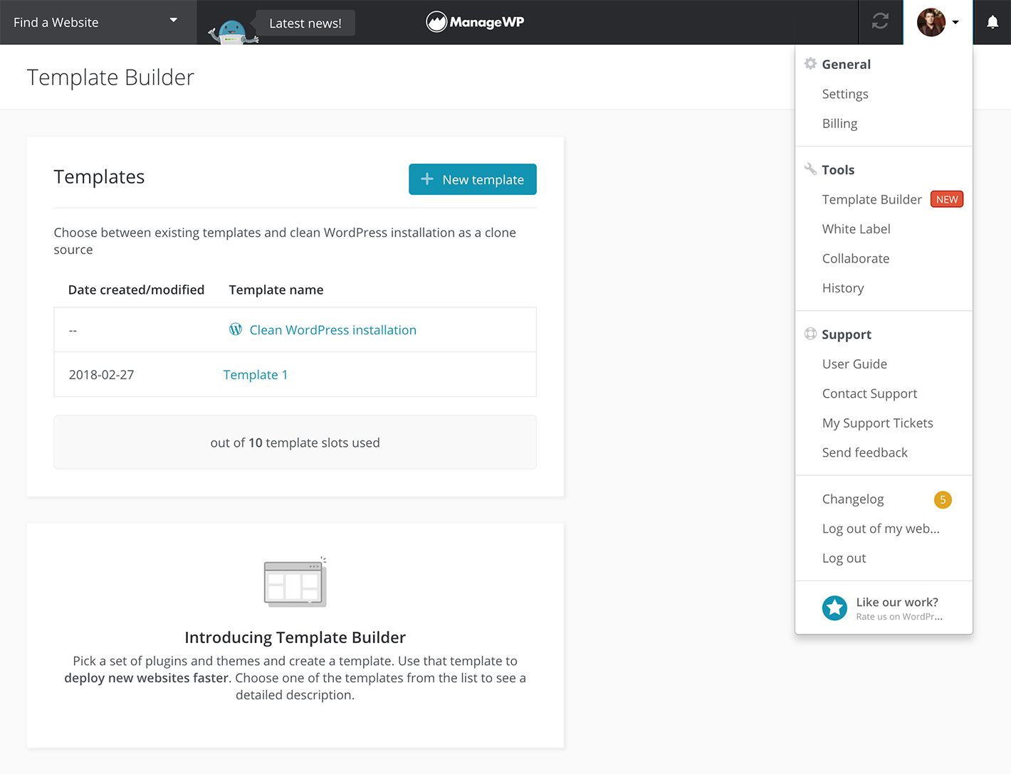 In February, we released the most requested feature of all time: the Template Builder. This feature will save you a lot of time since with the Template Builder, you can set up your favorite themes and plugins once and then use the created template when building new websites.