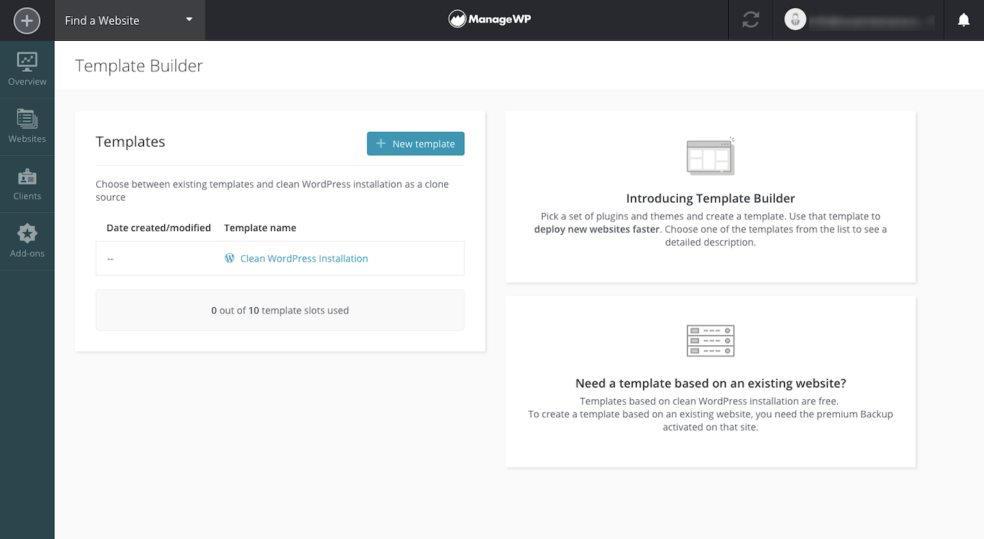 The Template Builder is a particularly handy tool for those who build WordPress websites. If you tend to use the same plugins and themes over and over again, why not save time hunting them down and installing them? With this, you can build your WordPress “template” and then clone as needed.