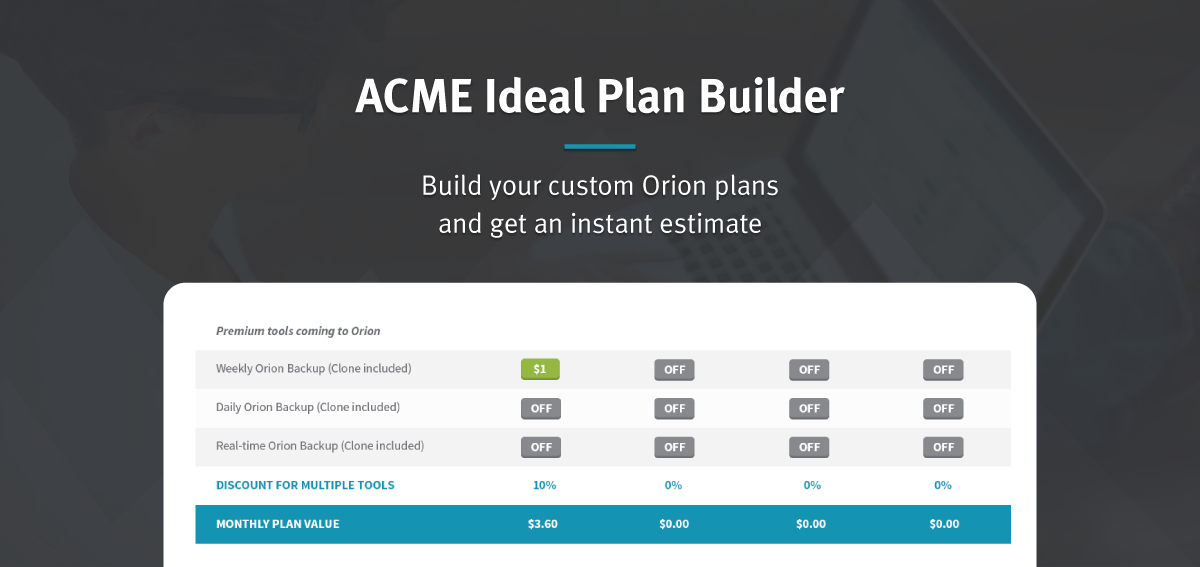 Check out the Orion pricing page below to figure out your perfect set of plans: