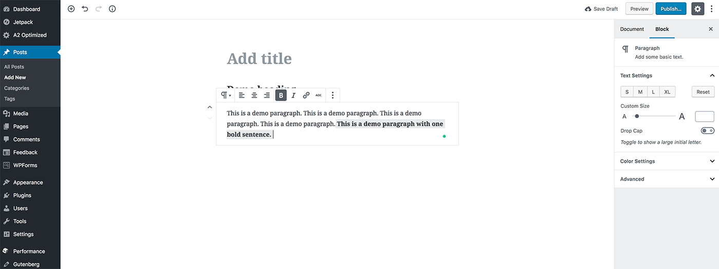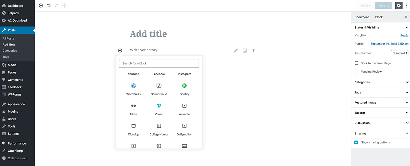 To sum it up, Gutenberg is a new editor that will replace the current one. Instead of using an interface somewhat similar to Word and other text-processing programs, Gutenberg will make use of content blocks which will allow you to add all the usual elements of a blog post such as paragraphs, headings, and images. But, it will also allow you to add blocks such as columns, Instagram feed, pull quotes, and more.