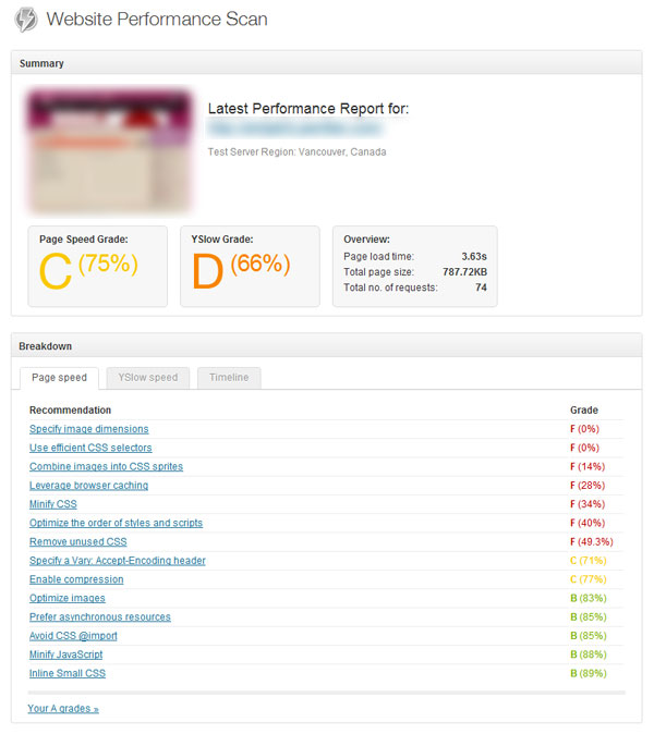 Page loading speed is one of the more important factors playing a role in both the user experience and search rankings for your site. We provide reports from both Google PageSpeed and Yahoo’s YSlow tools to give you a comprehensive picture of your website, together with recommendations.