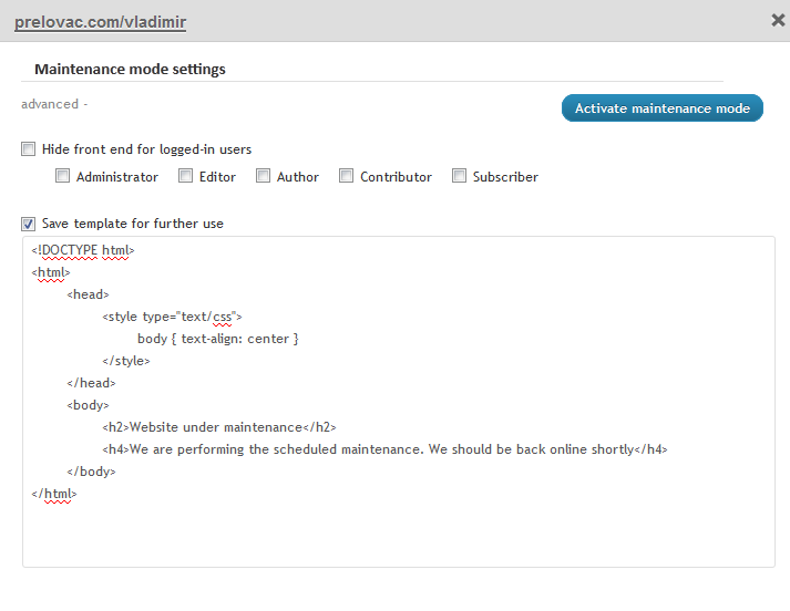 You can now place any website into a maintenance mode with a click of the button. The new option is available in the site popup-menu and it allows you to quickly disable the site for the visitors. Fully editable HTML template is available.